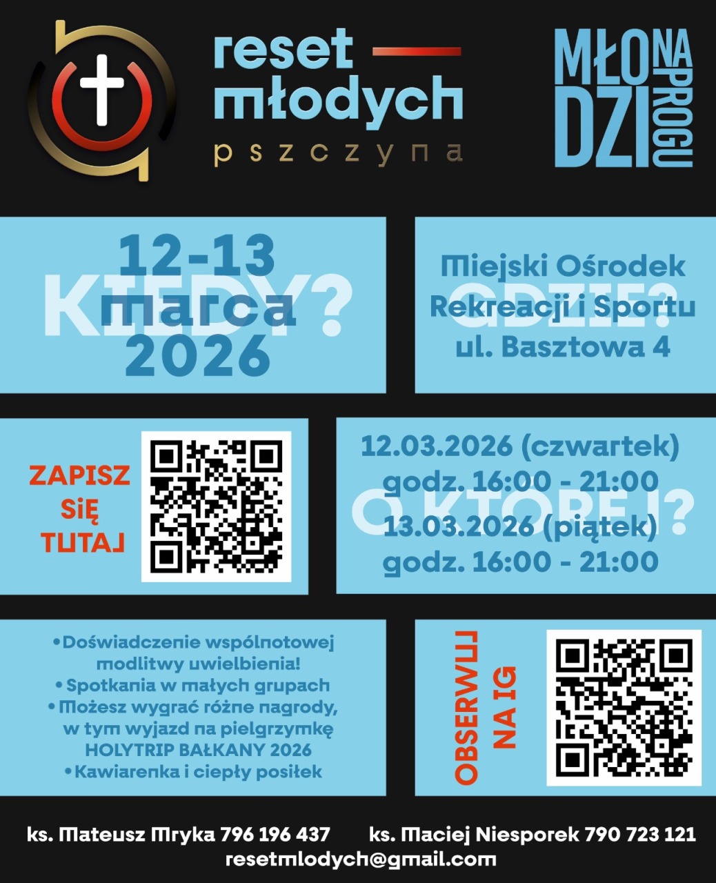 Kontakt z odpowiedzialnymi za wydarzenie: ks. Mateusz Mryka – 796 196 437