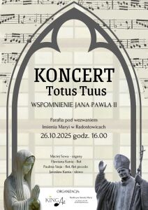 Serdecznie zapraszamy wszystkich, którzy pragną wspólnie uczcić pamięć Papieża i przeżyć ten czas na modlitwie i muzycznej refleksji.