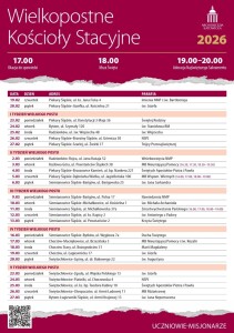 Po raz drugi zapraszamy do wielkopostnego pielgrzymowania po kościołach stacyjnych. Każdego dnia Wielkiego Postu (z wyłączeniem sobót i niedziel oraz Wielkiego Tygodnia) pielgrzymi odwiedzający kościoły stacyjne w dekanatach: piekarskim, siemianowickim, świętochłowickim oraz trzech parafiach Chorzowa, biorąc udział w liturgii będą mogli zdobyć pieczątki do specjalnie przygotowanych paszportów. Odbiór paszportów w kościołach stacyjnych - przed i po liturgii. Nagrodą główną, wylosowaną z nadesłanych paszportów, będzie pielgrzymka do Włoch ze zwiedzaniem Rzymu i udziałem w uroczystościach św. Apostołów Piotra i Pawła (z osobą towarzyszącą). Szczegóły na plakacie.